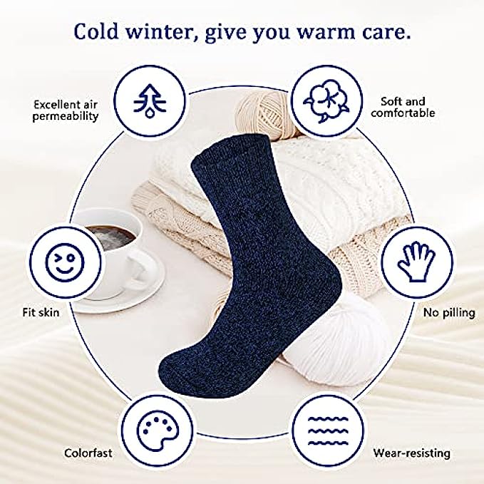 • Material and Benefit: Our womens wool socks are made of wool, polyester and spandex. The womens socks are soft, durable. Keeping your feet warm and healthy during cold weather is important to your health, which is why we need soft, thick warm socks.