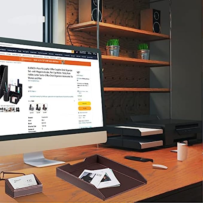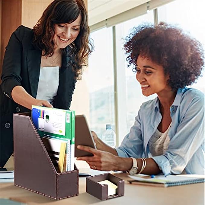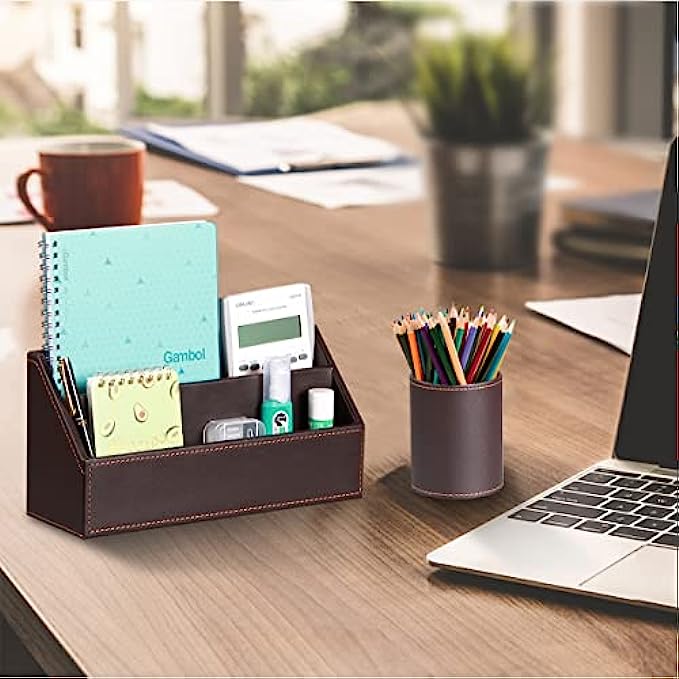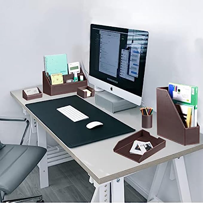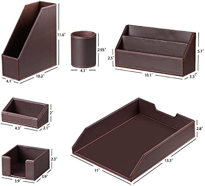 • 【6 Piece Office Supplies Desk Accessories Set】1*Paper/ Document Tray, 1*Magazine Holder, 1*Mail Sorter, 1*Pen Cup, 1*Sticky Note Holder , 1* Business Card Holder. Whether you seek desk accessories for men office or desk decorations for men office, This 6 piece set of desk accessories & workspace organizers has everything you need. fits your office theme perfectly.