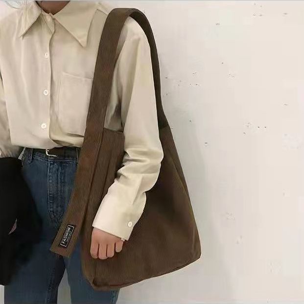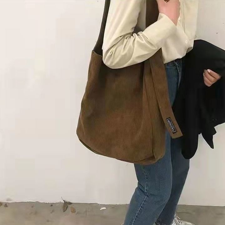 Autumn and Winter New Canvas Bag Vintage Corduroy Single Shoulder Bag Large Capacity Student Class Bag Versatile Messenger Bag