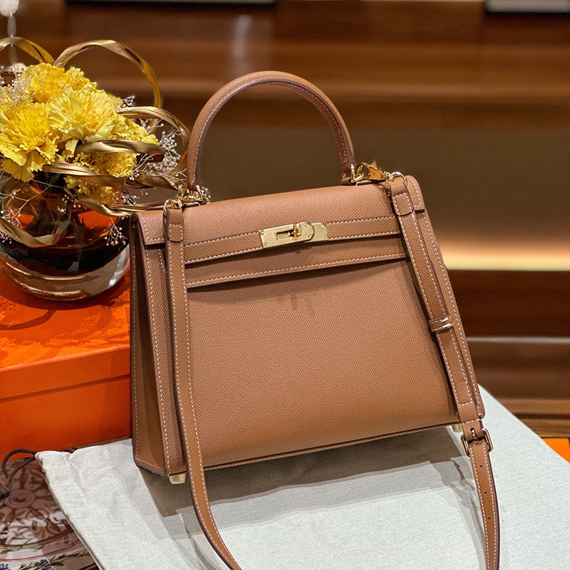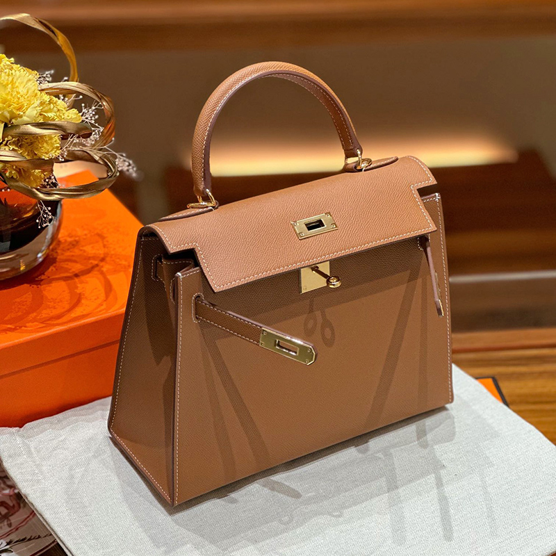 Donnain Handmade Stitching Luxury Epsom Calfskin Genuine Leather Women Desginer Handbags for Office Lady Fashion Gold Hardware Lock Closure 28CM