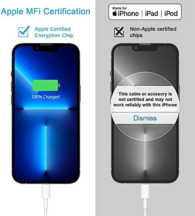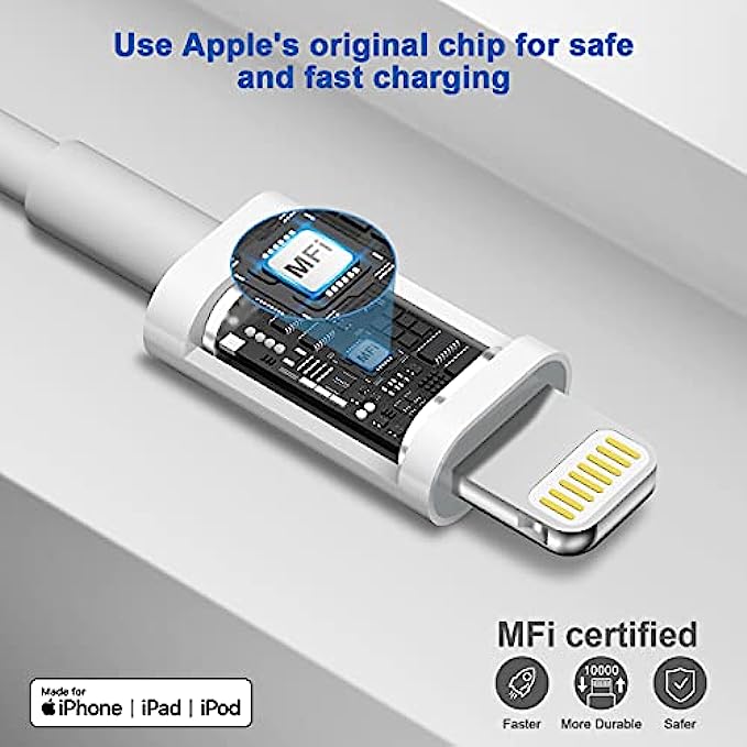 • ⚡【Original Apple MFi Certified Accessories】With the Original Apple MFi Certified chip,the USB C to Lightning cord supports iOS versions including all future updates.Also the USB-C PD adapter and Type-C to Lightning Cable will perfectly protect both your iphone/ipad devices also the brick/ cord against overheating, excessive current, short-circuit and overcharging.Apple MFi licensed iPhone charging cable promises no warning message pops up. Ensures fast charging and you could connect your MacBook/Pro with iPhone/iPad/iPod directly and get the 480 Mbps sync data transfer speed!