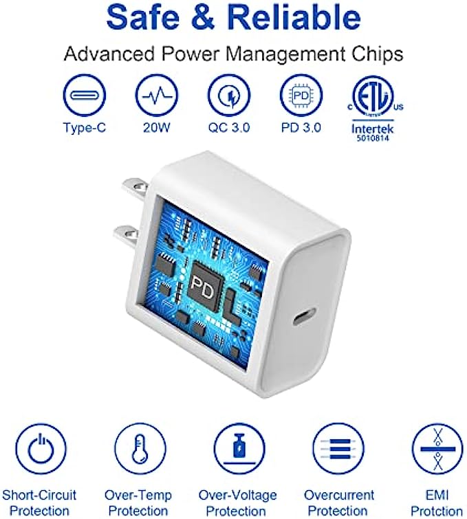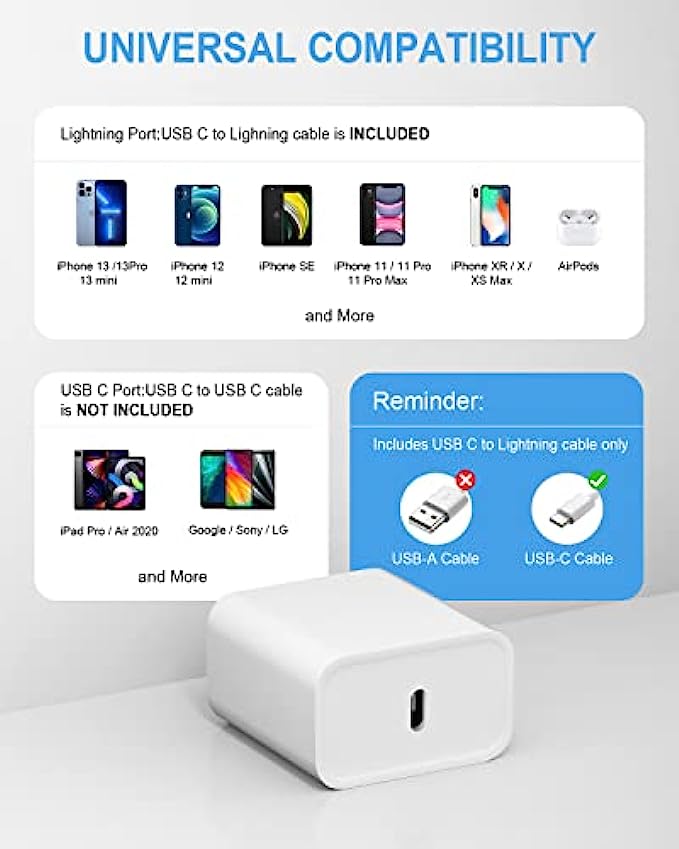 • ⚡【Apple iPhone Charger】: This fast charging sets included 2 pack 20W PD wall chargers and 2 pack USB-C cables,which can be used separately.Compatible with iPhone 13 /13 Mini /13 Pro /13 Pro Max /12 /12 Mini /12 Pro /12 Pro Max /iPhone 11 /11 Pro /11 Pro Max /iPhone XR /X /XS /XS Max /iPhone 8 Plus /SE 2020/iPad Pro, AirPods Pro; Samsung Galaxy S10 /S10e /S9 /S8 /Note 9 /Note 8;and other USB-C enabled devices.